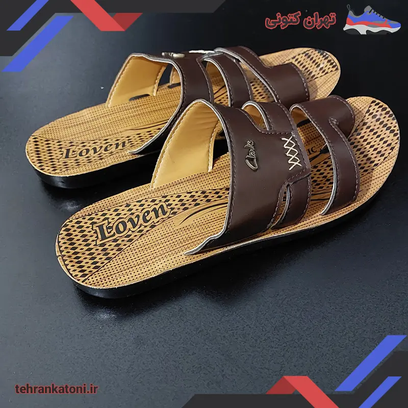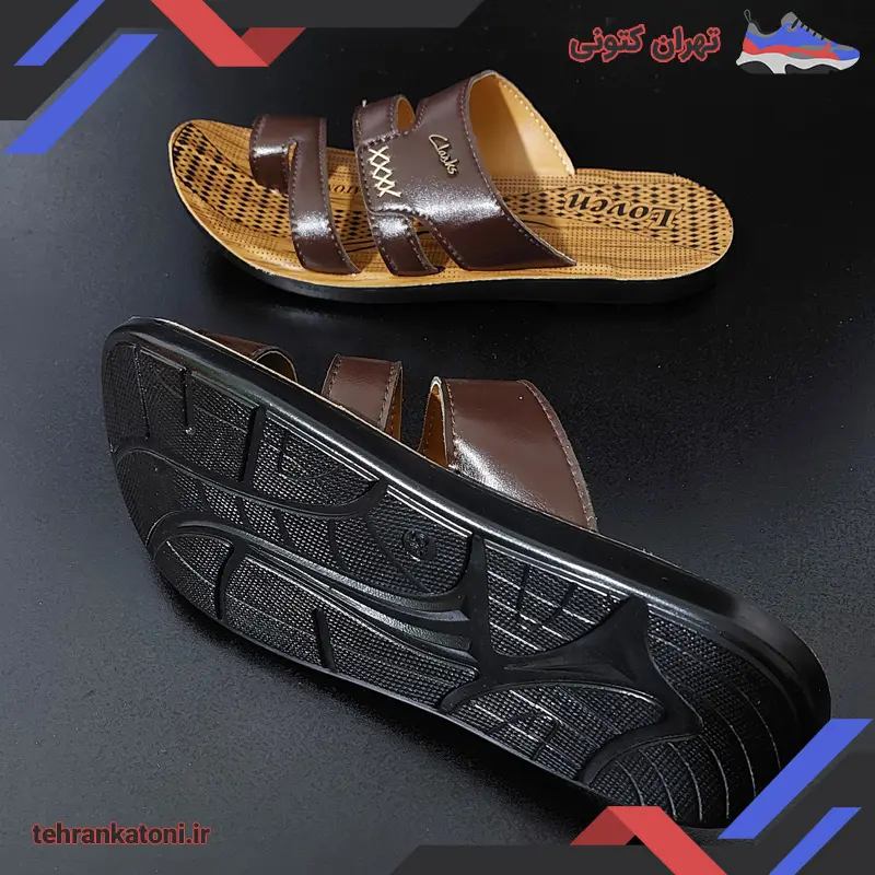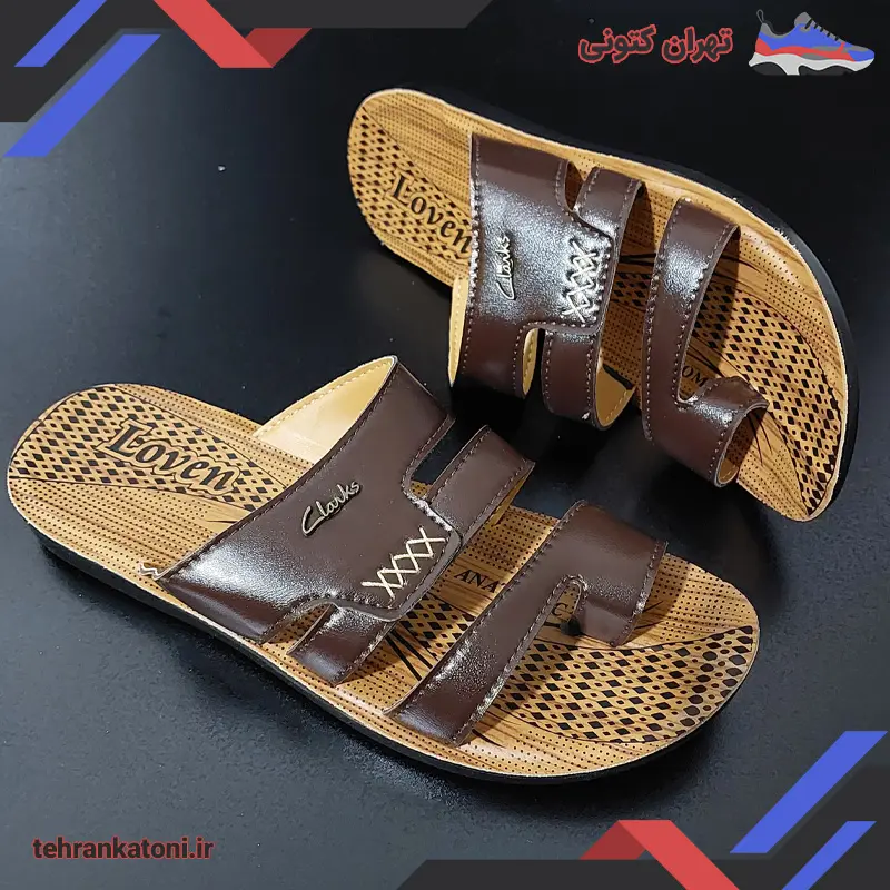 مشخصات دمپایی لاانگشتی مردانه چرمی قهوه ای سوخته کلارک لاون
